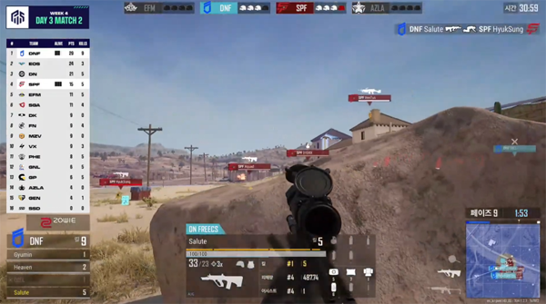 DN프릭스와 경기내내 맞대결을 펼쳤던 DK는 매치3과 매치6의 치킨을 확보해 오래간만에 부활을 알렸다. FN포천 역시 매치5의 치킨에 성공하는 등 마지막까지 최선을 다하는 모습으로 상위권에 올라섰다.