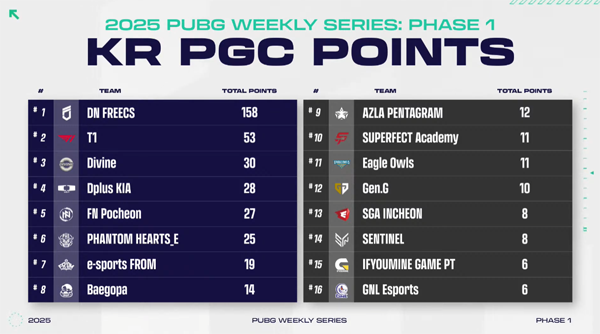 DN프릭스가 크래프톤의 주관으로 열린 'PUBG: 배틀그라운드(이하 배틀그라운드)' 한국 공식 e스포츠 대회, '2025 펍지 위클리 시리즈(PWS): 페이즈1' 4주차 경기에서도 1위를 차지했다. 결국 모든 정규 일정에서 연속 1위를 가져가며 압도적인 모습을 보여줬다.
