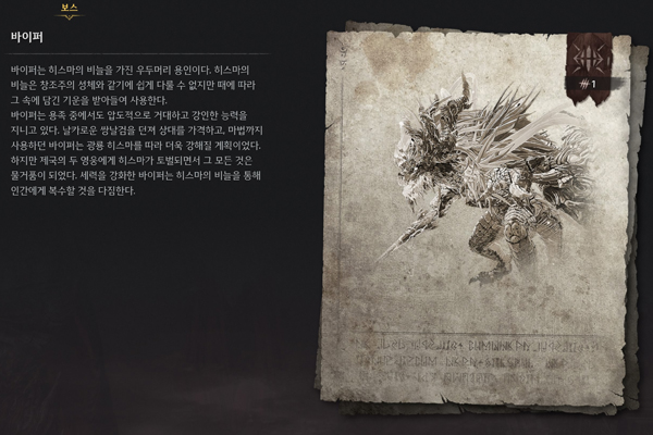 '바이퍼' 보스전은 각 무기에 대한 플레이 숙련도가 올라가지 않은 상황에서 마주치기 때문에 더욱 어렵다. 유저들은 다양한 패턴을 경험하며 도부와 창, 대검 등 주력 무기로 결정한 장비들을 적극 활용해 숙련도와 함께 패턴 익히기에 먼저 최선을 다해야 한다.