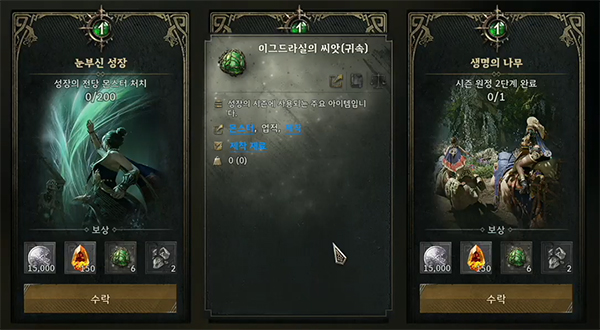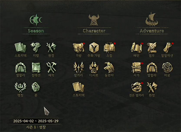 그리고, 새롭게 시즌 메뉴가 추가되어 시즌 콘텐츠를 빠르게 이용할 수 있다. 그 밖에도 시즌 컬렉션, 시즌 제작 등이 존재한다. 앞서 소개한 발키리의 성배는 시즌 제작에서 만들 수도 있다. 새롭게 추가된 시즌 룬은 시즌 종료 후 정규 콘텐츠로 편성된다.