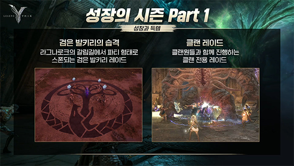 검은 발키리의 습격은 라그나로크의 갈림길에서 파티 형태로 스폰되는 검은 발키리 레이드로서 이번 시즌에 새롭게 선보인다. 혼자 상대하던 검은 발키리가 아닌 4인의 검은 발키리가 함께 등장해 높은 난이도를 보여줄 것으로 보여 파티를 맺어야 공략이 가능하다. 또한, 클랜 전용 레이드도 선보여 클랜원들과 함께 진행할 수 있다.