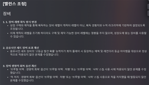 즉, 이제부터 캐릭터 레벨을 초기화 하더라도 구매 및 획득 가능 장비 레벨에는 영향을 주지 않도록 변경되는 것이다. 게임 플레이에 어려움을 겪고 있는 유저들에게도 장비 밸런스 보완이 이뤄지면서 다양한 플레이를 이어갈 수 있게 수정됐다.