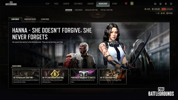 크래프톤은 게임의 8주년 축하와 함께 기세를 이어 다양한 콘텐츠를 유저들에게 선보인다. 새롭게 공개된 신규 콘텐츠 '컨텐더'는 캐릭터의 커스터마이징 기능이 이전보다 강화된 콘텐츠로, 다양한 꾸미기 요소가 담겨긴 새로운 제작소 시스템이다.