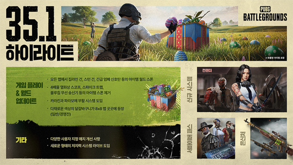 관련 시스템은 4월 9일 35.1 업데이트를 통해 도입될 예정이다. 더불어 크래프톤은 '배틀그라운드' 인게임 패치 내용을 담은 새로운 수정안을 들고 2025년 2분기를 시작한다. 특히 경쟁전과 일반전의 게임 플레이 일원화, 새로운 저지력 시스템 추가 등이 적용된다.