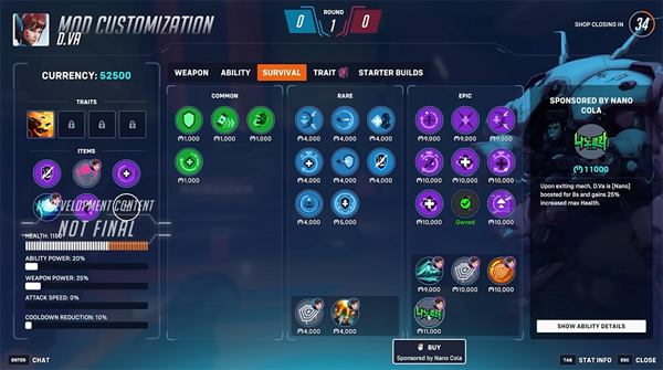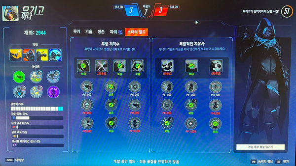 가령 라인하르트는 방패를 착용한 채 돌진 공격이 가능해지고, 루시우는 궁극기 쿨타임 감소로 팀에 지속력을 부여하는 것이 가능하다. 공격 영웅들은 극딜 형태 중심의 아이템 배치가 가능하지만, 반대로 스킬과 기술에 특화된 플레이 강화를 통해 변수를 노릴 수 있도록 유저 스스로 빌드를 짤 수 있다.