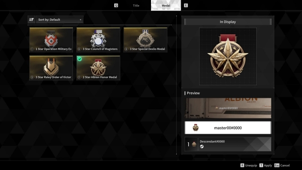 훈장은 유저가 게임에서 이룬 성취를 다른 유저들에게 보여줄 수 있는 시스템이다. 특정 업적을 달성하면 획득할 수 있으며, 같은 업적을 반복해서 획득하면 등급이 상승하고 훈장의 외형도 더 화려해진다. 획득한 훈장은 네임택이나 네임카드에 표시할 수 있다.