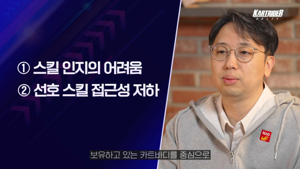 먼저 오버드라이브 업데이트 이후의 혼란에 대해 언급했다. 2023년 말 진행된 '오버드라이브' 업데이트는 게임 전반에 걸쳐 대대적인 개편을 포함하고 있었다. 특히, 기존 캐릭터에 부여됐던 고유 스킬을 카트바디에 이식하는 시스템 변화는 게임 플레이의 핵심인 아이템전에 커다란 영향을 끼쳤다.