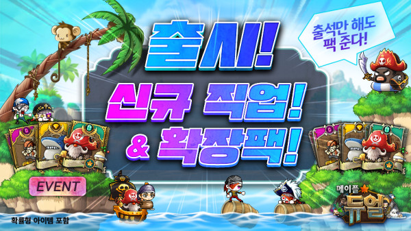 이와 함께, ‘메이플 듀얼’ 월드는 신규 확장팩 ‘노틸러스’를 업데이트했다. ‘옥토피’ 하수인을 부리고 적에게 피해를 주는 신규 직업 ‘해적’과 ‘장로스탄’, ‘파풀라투스’ 등 새로운 몬스터를 얻을 수 있는 ‘노틸러스’ 카드팩이 추가됐으며, ‘노틸러스’, ‘오르비스’, ‘루디브리엄’의 3종 신규 맵도 함께 선보인다. 5월 8일까지 2종 신규 오리지널 월드와 ‘메이플 듀얼’ 월드를 플레이한 이용자 중 추첨을 통해 10,000명에게 100월드코인을 지급하며, 21일까지 ‘메이플 듀얼’에 접속 시 클래식과 ‘노틸러스’ 카드팩을 지급하는 출석 이벤트를 진행한다.