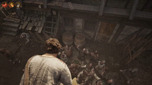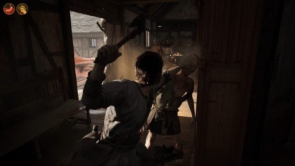 그리고 해당 요소가 생기면 캐릭터의 움직임이 반영되는 것도 확인됐다. 다리 부상을 당하면 다리를 절거나, 배가 고프거나 탈진이 많으면 움직임이 지치고 부자연스럽다. 해당 요소가 충족되면 그 게이지는 사라진다.