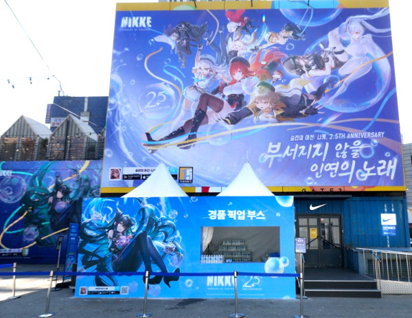 현장을 찾은 방문객들은 대형 군상 KV 현수막을 통해 2.5주년을 맞은 ‘승리의 여신: 니케’ 세계관의 깊이와 스토리텔링의 매력을 생생하게 느낄 수 있다.