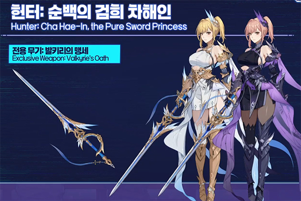 다른 평행세계에 존재하는 S급 신규 헌터, 순백의 검희 차해인이 등장한다. 수속성에 전용 무기는 발키리의 맹세를 사용한다. 전투를 통해 검의 의지 게이지가 쌓이면 방어력과 치명타 확률이 올라가는 천공의 의지가 발동하여 딜량이 상승하는 특징을 가졌다. 궁극기는 적 마비 효과가 더해져 딜러로서 이전에 선보인 차해인과는 차별화된 모습을 보여줄 예정이다.