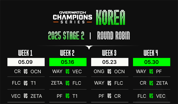 '2025 오버워치 챔피언스 시리즈 코리아(이하 OWCS 코리아)'의 스테이지 2가 서울 홍대에 위치한 WDG 스튜디오에서 5월 9일 오후 5시 개막한다.