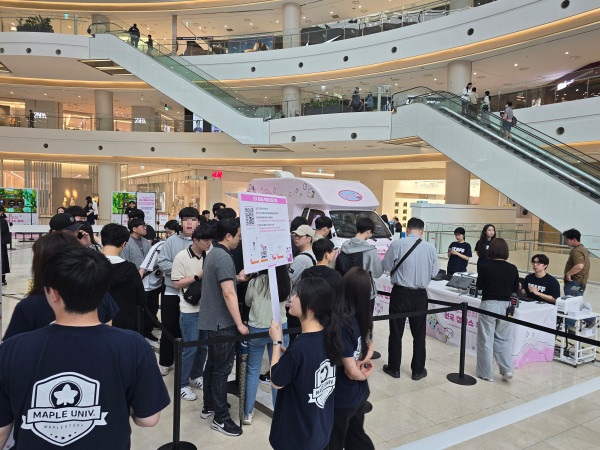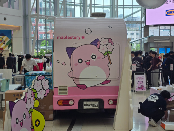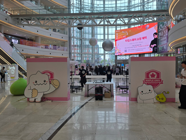 행사가 시작되기 전에 관계자들이 준비 중인 모습이다. 이벤트 참가를 위한 동선이 마련됐고, 여기저기에 '메이플스토리'의 주요 캐릭터들이 눈에 띈다.
