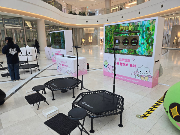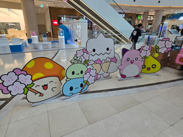 행사장 주위에는 핑크빈을 비롯해 슬라임, 주황버섯, 예티 등 귀여운 캐릭터들이 배치되어 봄의 느낌을 전달하고 있다.
