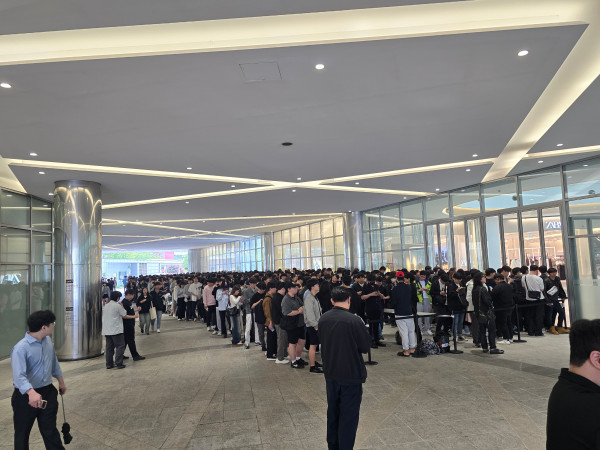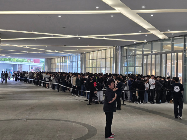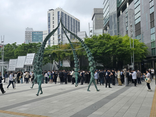 11시 오픈을 앞두고 입장을 위해 인원들이 대기 중이다. 가장 먼저 줄을 선 관람객은 대구에서 왔으며, 오전 7시부터 줄을 섰다고 한다. 평일 오전임에도 많은 인원이 몰렸으며, 이정도 규모에서 더 늘어나지 않을 것으로 예상했다.