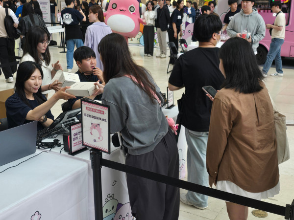 행사 시작 즈음해 이 코너에는 점차 사람들이 몰려들었으며, 학생증 발급을 안내하는 인원과 안내판이 곳곳에 배치되어 있었다.