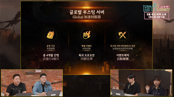 새로운 글로벌 부스팅 서버 계획도 함께 소개됐다. 오는 5월 28일부터 8월 서버 통합 이후까지 진행될 예정으로, 총 4개월간의 운영을 통해 복귀 프로모션과 다양한 이벤트 매치, 부스팅 서버 만의 '라인반트의 성전' 콘텐츠를 제공할 것으로 밝혔다.