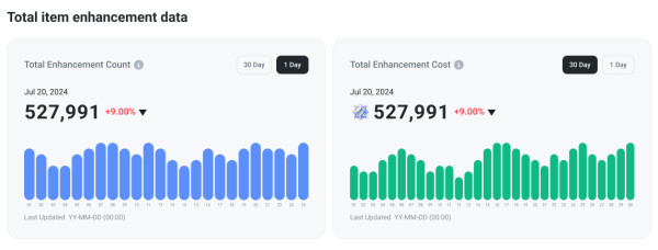 예를 들어, 특정 부위나 강화 단계에서 강화 시도가 급증하면, 해당 그룹 전체의 강화 비용이 상승할 수 있다. 이는 특정 아이템 하나가 아니라, 해당 범주 전체의 수요 변화를 반영하는 방식이다. 결과적으로 실시간 유저 수요가 즉각적으로 경제 시스템에 반영되어, 유저가 체감하는 경제의 역동성이 커진다.