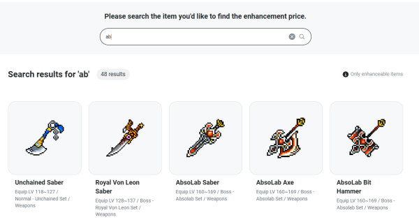 강화 가격은 개별 아이템마다 정해지는 것이 아니라, 약 2,000개의 그룹 단위로 묶여 관리된다. 그룹은 강화 레벨 구간, 보스/비보스 분류, 장비 부위(무기, 방어구, 액세서리 등) 등 다양한 기준에 따라 나뉜다.