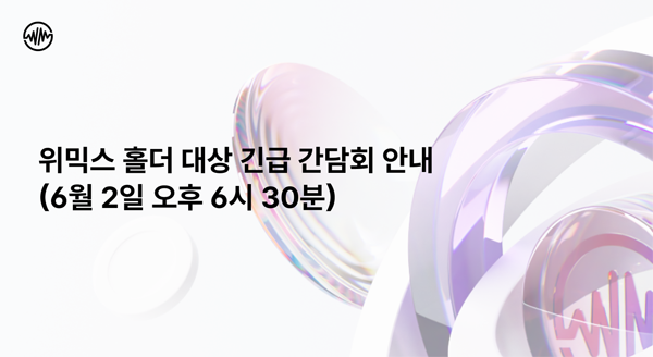 '위믹스' 팀은 1일 공지를 통해 오는 6월 2일 오후 6시 30분 긴급 간담회에서 '위믹스' 홀더들과 직접 소통에 나설 것을 예고했다. 김석환 '위믹스' 재단 대표가 직접 참석할 예정으로, 해당 간담회는 '위믹스' 공식 유튜브 채널을 통해 생중계된다.