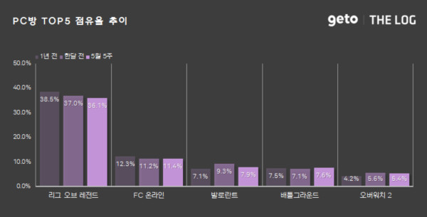 게토에서 제공하는 PC방 게임 통계서비스 더로그에서 2025년 5월 5주(2025.05.26 ~ 2025.06.01) PC방 주간 리포트를 공개했다.