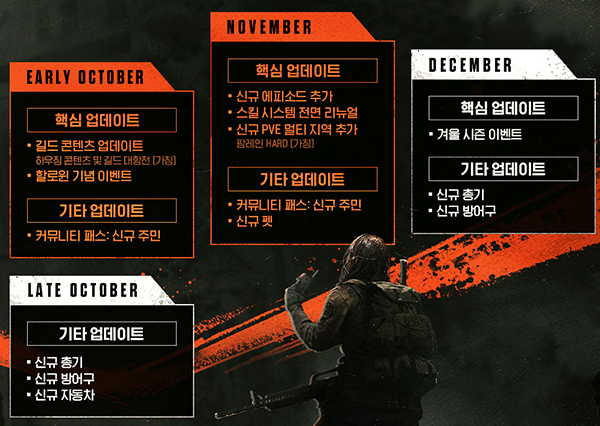 11월에는 드디어 신규 에피소드가 추가되고, 스킬 시스템의 전면 리뉴얼을 예고했다. 새로운 스토리 콘텐츠는 그동안 반복적인 콘텐츠에 아쉬움을 표했던 유저들에게 신선한 경험을 제공하고, 스킬 시스템 리뉴얼은 캐릭터 커스터마이징의 폭을 크게 넓혀 각자만의 독특한 플레이 스타일을 구현할 수 있게 할 예정이다. 신규 PvE 멀티 지역 팜레인 하드 맵도 추가되어 고난이도 콘텐츠를 원하는 하드코어 유저들의 니즈도 충족시킬 예정이다.