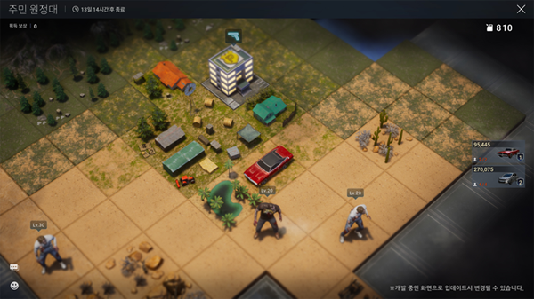 정중재: 주민을 활용해 이벤트들을 경험하게 되고, 전투 시뮬레이션을 발생하는 것을 지켜보는 것이다. 주민을 키워나가게되면 더욱 강한 대처가 가능하고 추가 재화 파밍도 가능한 형태로, 게임의 목표는 쉘터와 주민을 견실하게 키워나가는 것이 목표다.