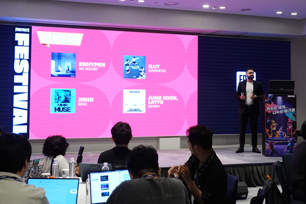 마이클 모든 에픽게임즈 파트너십 시니어 디렉터는 다음 세션을 통해 새로운 파트너와의 협업 사실을 공개했다. 기존의 마블과 넷플릭스의 오징어게임 등과의 협업 사실을 소개했고, 이어 K팝 아티스트들과의 '잼트릭' 콘텐츠에서 만나 볼 수 있는 콘텐츠를 전했다.