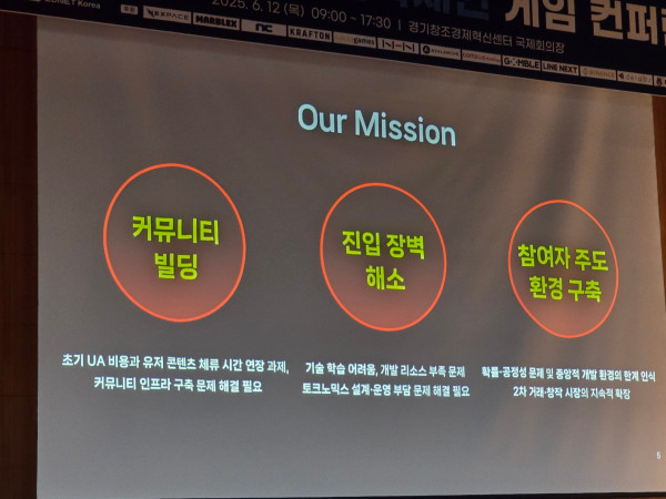 두 번 째는 진입장벽이다. 많은 웹2 유저들이 지갑 생성 자체를 두려워하고, 개발사 입장에서도 토크노믹스와 연동된 운영의 불확실성, 기술적 부담이 컸다. 마지막으로, 참여자 주도 환경 구축의 한계도 있었다. P2E(Play to Earn) 모델의 지속 가능성에 의문을 품고, 유저가 주도적으로 자산을 활용·교환할 수 있는 인프라가 부족하다는 점을 절감했다.