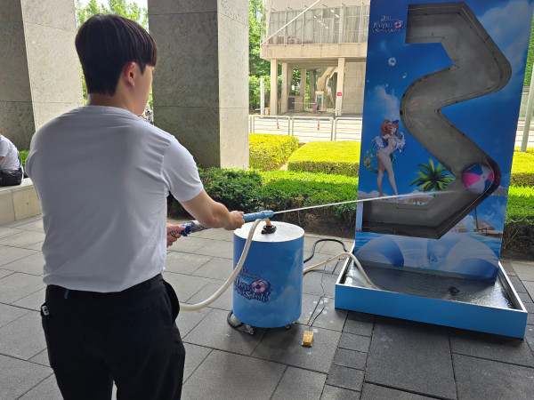 입구 앞에는 유저들이 기념 사진을 찍을 수 있는 포토존과 워터건으로 공 띄우기 등의 미니게임존이 마련됐다.