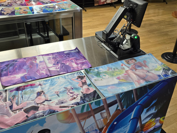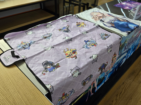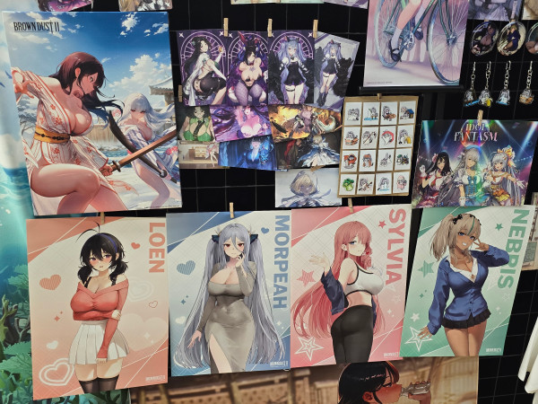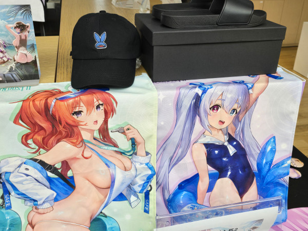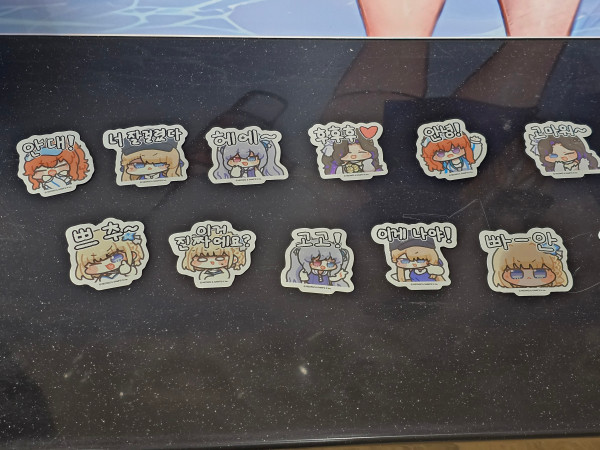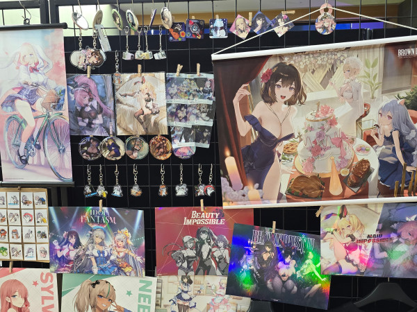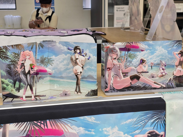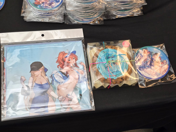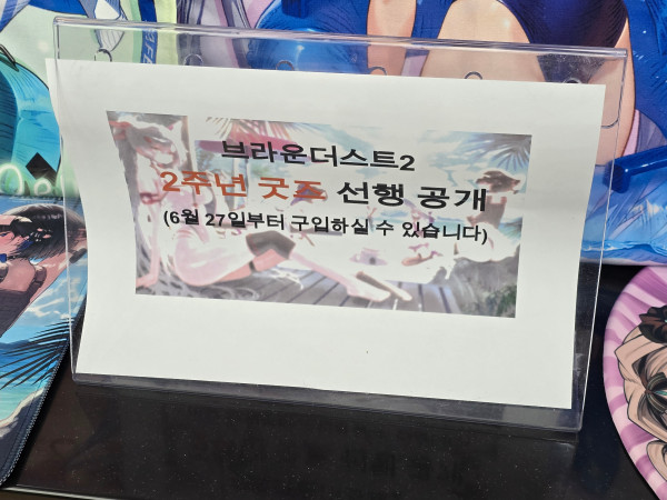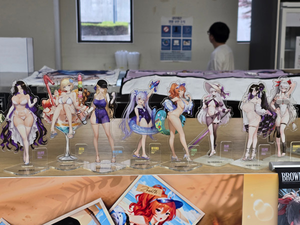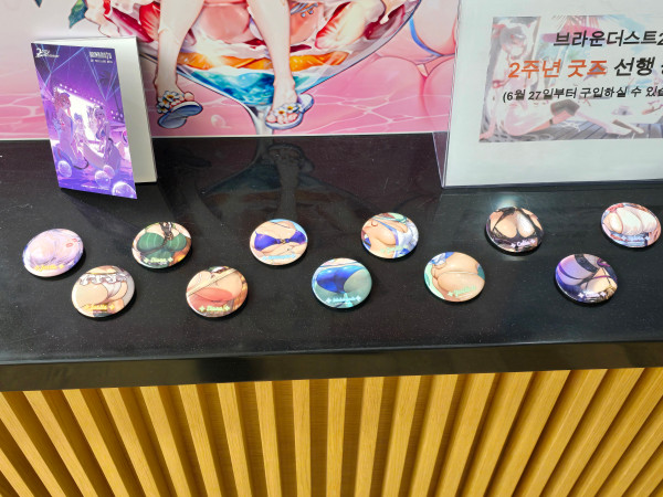 쿠션과 아크릴 굿즈, 모자, 마우스패드, 버튼 등 다양한 굿즈들이 전시됐다. 여름을 맞아 시원한 모습의 캐릭터들의 굿즈가 주로 제작된다.