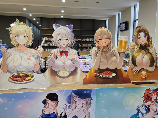 카페테리아에는 출시 중 혹은 출시를 앞두고 있는 굿즈들이 전시되어 눈길을 끌었다.