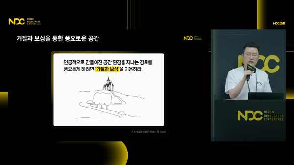 이용태 레벨 디자이너는 오픈 월드란 단지 넓은 공간이 아니라, 플레이어의 여정과 감정, 그리고 그들이 겪는 경험을 설계하는 무대라고 강조하면서, 이것을 만드는 레벨 디자이너의 역할에 대해 되새기며 세션을 마무리했다.