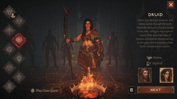 디아블로 이모탈의 9번째 플레이 가능한 직업으로 추가 비용 없이 누구나 플레이할 수 있는 드루이드는 원초적인 에너지를 집중하여 야수로 변신하고, 자연의 분노를 끌어내고, 다재다능한 혼합형 전투로 적들을 압도한다. 황야에서 조화와 파괴를 실현하려는 플레이어들을 새로운 여정으로 이끌 것이다.