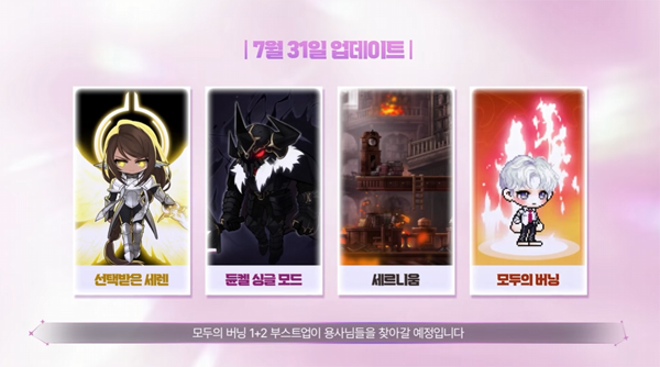 이 밖에도, 오는 7월 31일에는 리더 캐릭터로 선정한 캐릭터 육성 시 2개의 동료 캐릭터가 동시에 성장하는 ‘모두의 버닝 1+2 부스트업’ 이벤트를 진행한다. 기존 ‘모두의 버닝’ 혜택이 더욱 강화된 이벤트로 동료 캐릭터도 1+2 레벨업 혜택을 이용할 수 있다.