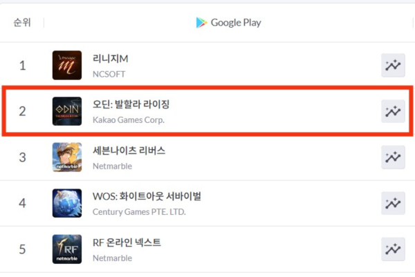 카카오게임즈가 서비스하는 ‘오딘: 발할라 라이징’이 국내 구글 플레이 매출 순위 2위를 기록하며 최상위권에 재안착했다. 최근 진행된 4주년 업데이트가 이용자에게 높은 반응을 얻으며 나타난 결과로 풀이된다.
