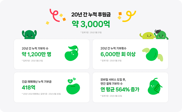 네이버 최수연 대표는 “네이버 해피빈은 인터넷 시대부터 모바일의 진화와 AI 파고까지 디지털 환경의 발전에 맞춰 기부의 형식과 참여 방법 등을 지속적으로 확장하면서 일상 속 기부 활성화에 기여해왔다”며 “앞으로 AI 등 첨단기술을 더하고, 커머스, 플레이스 등 서비스 연계 등을 통해 사용자들이 기부 경험을 다양하게 확대할 수 있도록 꾸준한 투자와 지원을 아끼지 않겠다”고 말했다.