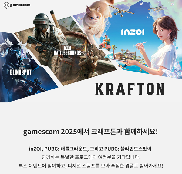 크래프톤(대표 김창한)이 독일 쾰른에서 열리는 세계 최대의 게임쇼 ‘게임스컴 2025’에서 다양한 현장 프로그램과 이벤트를 진행한다.