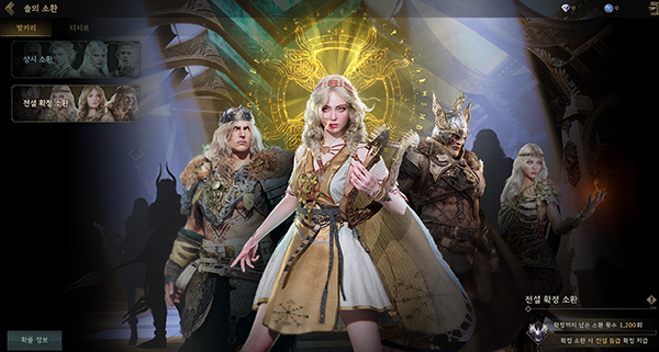 '이미르'의 가챠는 변신 시스템과 같은 발키리, 펫 개념의 디시르로 구성됐다. 발키리는 120회 소환하면, 영웅 등급을, 1,200회 소환하면 전설 등급을 확정적으로 제공한다. 디시르도 마찬가지의 천장 시스템이 적용됐다.