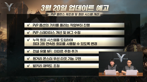 방송 진행은 석훈 PD와 김성희 디렉터가 맡았으며, 약 4천 명의 유저가 동시 시청했다. 석훈 PD는 "이번 업데이트는 지킬 수 있는 약속만 준비했다"라며, "부족한 부분을 말씀해주시면 지속적으로 개선해 나가겠다"고 약속했다.