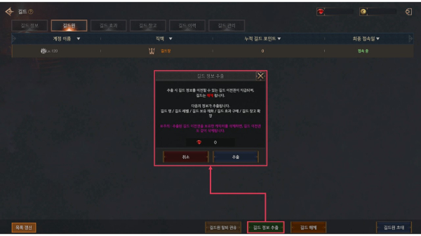 길드 단위 침공도 지원된다. 길드장은 암흑도약 기간 중 무료로 길드 정보를 추출해 ‘길드 서버 이전권’을 획득할 수 있다. 추출 시 길드는 자동 해체되며, 길드 레벨 3 이상, 창고 아이템 미보유, 길드원 전원 탈퇴(길드장 제외) 등의 조건을 충족해야 한다. 이전권을 보유한 상태로 침공하면, 침공 서버에서 해당 아이템을 사용해 기존 정보를 반영한 길드를 생성할 수 있다. 이전 시 길드명, 레벨, 재화, 스킬, 창고 확장 상태는 유지되며, 그 외 정보는 초기화된다.