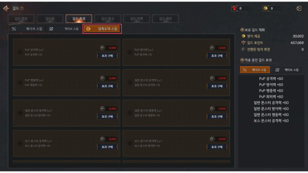 힘의 휘장 보유량에 따라 랭킹과 전용 계급이 부여되며, 암흑도약 기간 종료 시점에 보유한 힘의 휘장은 길드 재화로 전환되어 다음 시즌까지 적용되는 패시브 스탯(공격력, 방어력, 명중력, HP, 경험치, 치명타 피해량 등) 구매에 사용된다. 시즌이 시작되면 길드 포인트와 패시브 효과는 초기화된다.