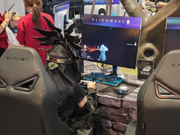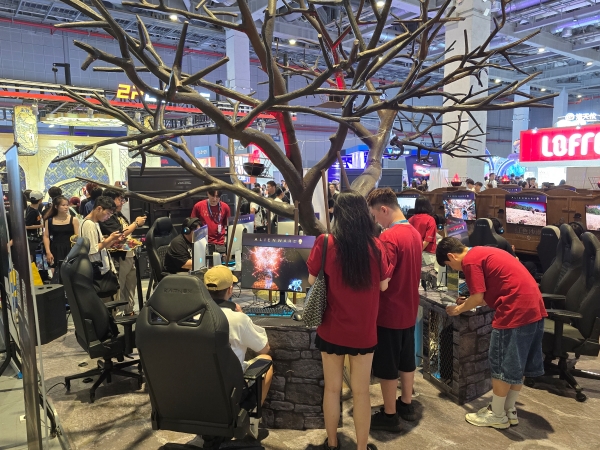 이번 빌리빌리 월드 전시 부스는 게임 내 핵심 보스 지역의 특색을 부스 공간에 그대로 반영한 것이 눈길을 끈다. 부스 입구에는 게임 속 '사슴왕'이 앉아있던 거대한 의자를 포토존으로 재현해 방문객들의 관심을 유도하고 있다. 시연 구역은 음산한 분위기의 '헥세 마리' 전투 필드를 모델로 연출하여 강한 몰입감을 자아낸다.