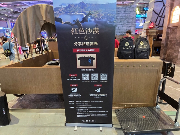 게임 시연에 참여한 방문객에게는 붉은사막 백팩을 기념품으로 제공하며, 시연 완료 후 현장에서 위시리스트에 등록하면 '붉은사막 손 선풍기'를 추가로 증정한다. 다만 손 선풍기는 일일 한정 수량으로 제공된다.