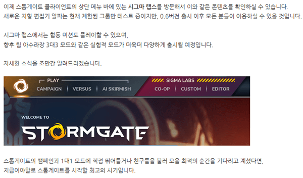 한편, '스톰게이트'는 11개월 동안의 발전을 통해 게임 플레이 변화를 만들어 왔다. 최근 0.5 업데이트 버전에서는 신규 맵 '엣지 오브 오블리비언'을 추가하고 신규 메커니즘 '스톰게이트'를 추가해 인게임에서 변수를 가져갈 수 있는 요소들을 더했다.
