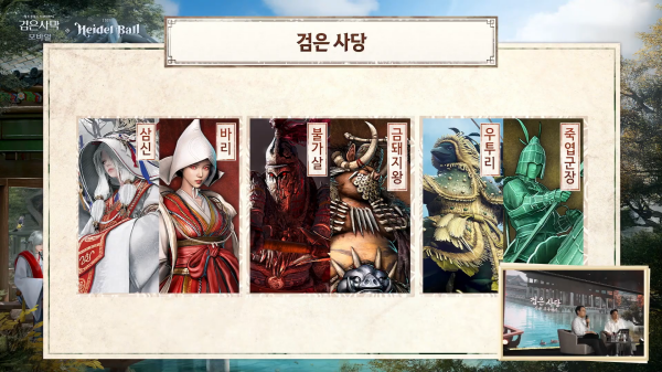 이와 함께 인기 콘텐츠 ‘검은 사당’ 파트 2가 시작된다. 삼신, 불가살, 우투리가 먼저 등장한다. 첫 공개되는 신규 우두머리는 ‘오재시니’로, 향후 ‘칠재시니’까지 순차적으로 등장할 예정이다.
