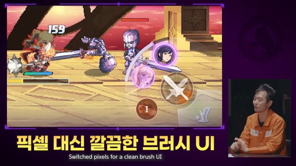 그래픽 면에서도 큰 변화가 있었다. 픽셀트라이브라는 회사명에서 알 수 있듯 기존에는 픽셀 아트에 집중했지만, 픽셀에만 집착해서 단조로워졌다는 의견이 많아 UI를 완전히 새로 디자인했다고 설명했다. 기존의 도트 방식에서 벗어나 브러시를 활용한 더 깔끔하고 간결한 터치로 바꿨으며, 이를 통해 부드러운 느낌을 구현했다.