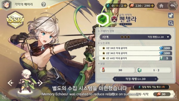 기사 육성 시스템에서는 단순히 뽑기에만 의존하지 않도록 '기억의 메아리'라는 별도 수집 시스템을 도입했다. 기사는 뽑기로만 획득할 수 있지만, 기억의 메아리를 통해 매일 기사 조각을 수급해 원하는 기사를 최종 단계까지 성장시킬 수 있다. 각 기사의 능력치를 강화하는 전용 성물은 뽑기가 아닌 확정 구매 방식으로 제공되어, 과도한 과금 부담 없이 합리적인 방식으로 기사를 육성할 수 있도록 했다고 개발사는 강조했다.