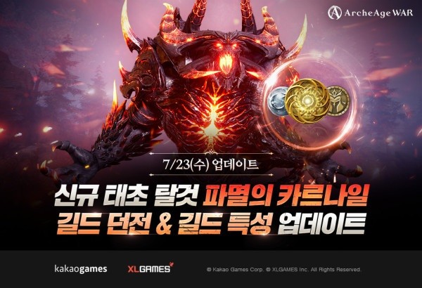 카카오게임즈(대표 한상우)는 23일, PC·모바일 크로스플랫폼 MMORPG ‘아키에이지 워’에 신규 태초 등급 탈것을 포함한 대규모 업데이트를 실시했다고 밝혔다.
