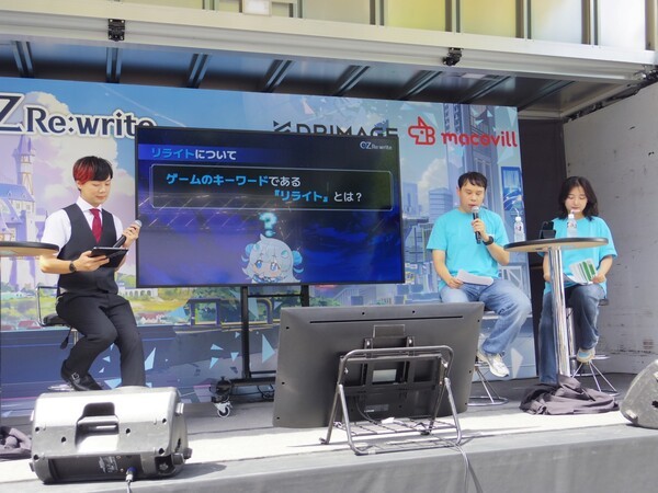 이어 아베 씨는 본 작품의 키워드인 '리라이트'를 현실 세계에도 확장해 즐길 수 없을까라는 아이디어에서 출발한 '공동 창조 캠페인'에 대해 언급했다. 앞서 무대에 오른 개발팀의 발표에서도 언급되었지만, X에서 진행 중인 이 캠페인은 '유저=게임의 주인공'이라는 설정으로, 상상력으로 무에서 유를 창조할 수 있는 주인공의 개념을 게임 외부의 세계까지 확장하려는 시도다.